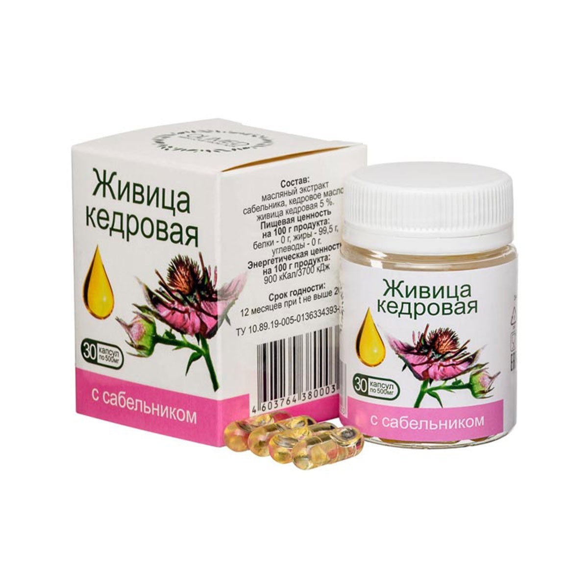 Живица кедровая с сабельником, 30 капсул по 500 мг