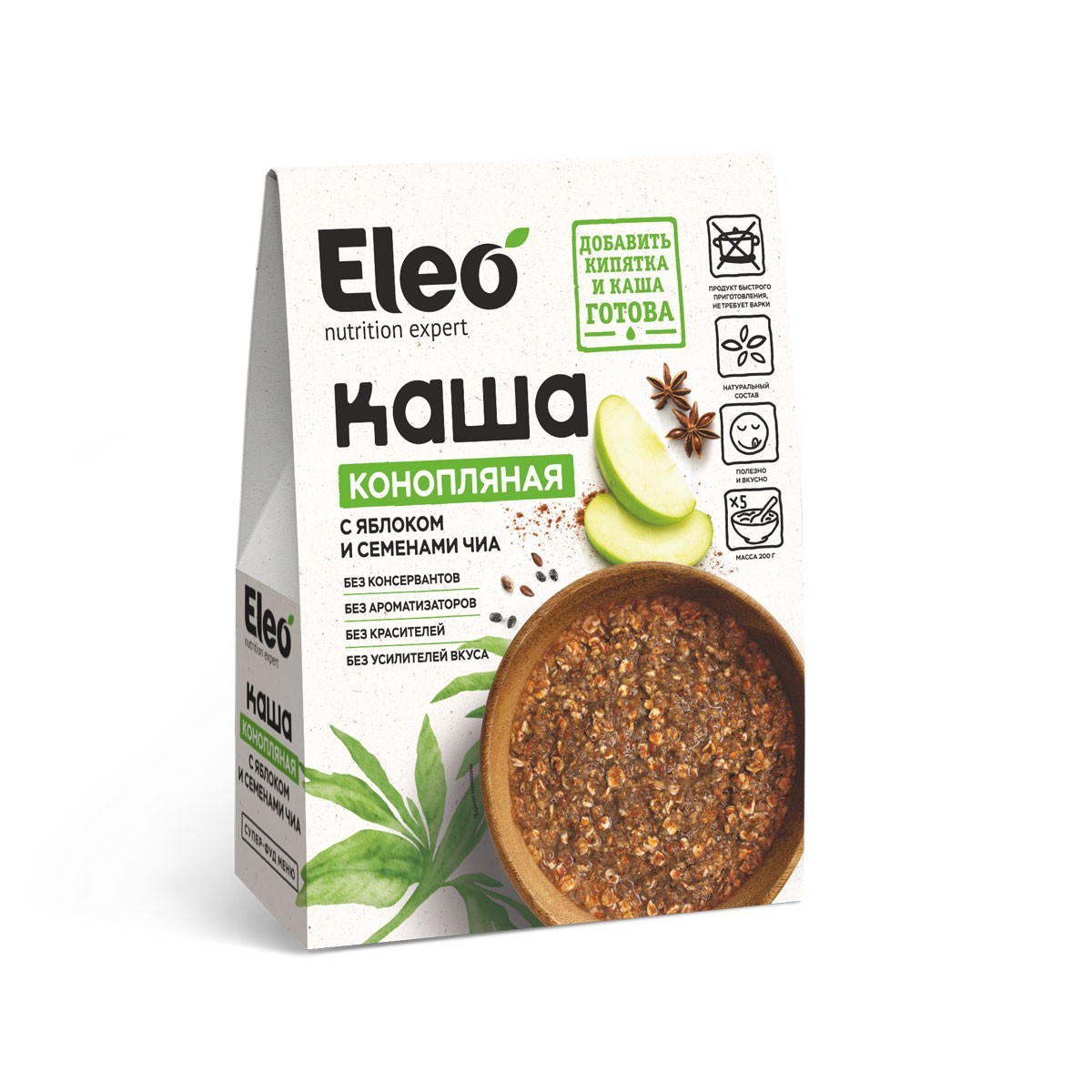 СОСТАВ: Хлопья ржаные, мука из семян конопли, мука из семян льна, семена чиа, яблоко, сахар, корица. Может содержать следы орехов , семян кунжута и горчицы.