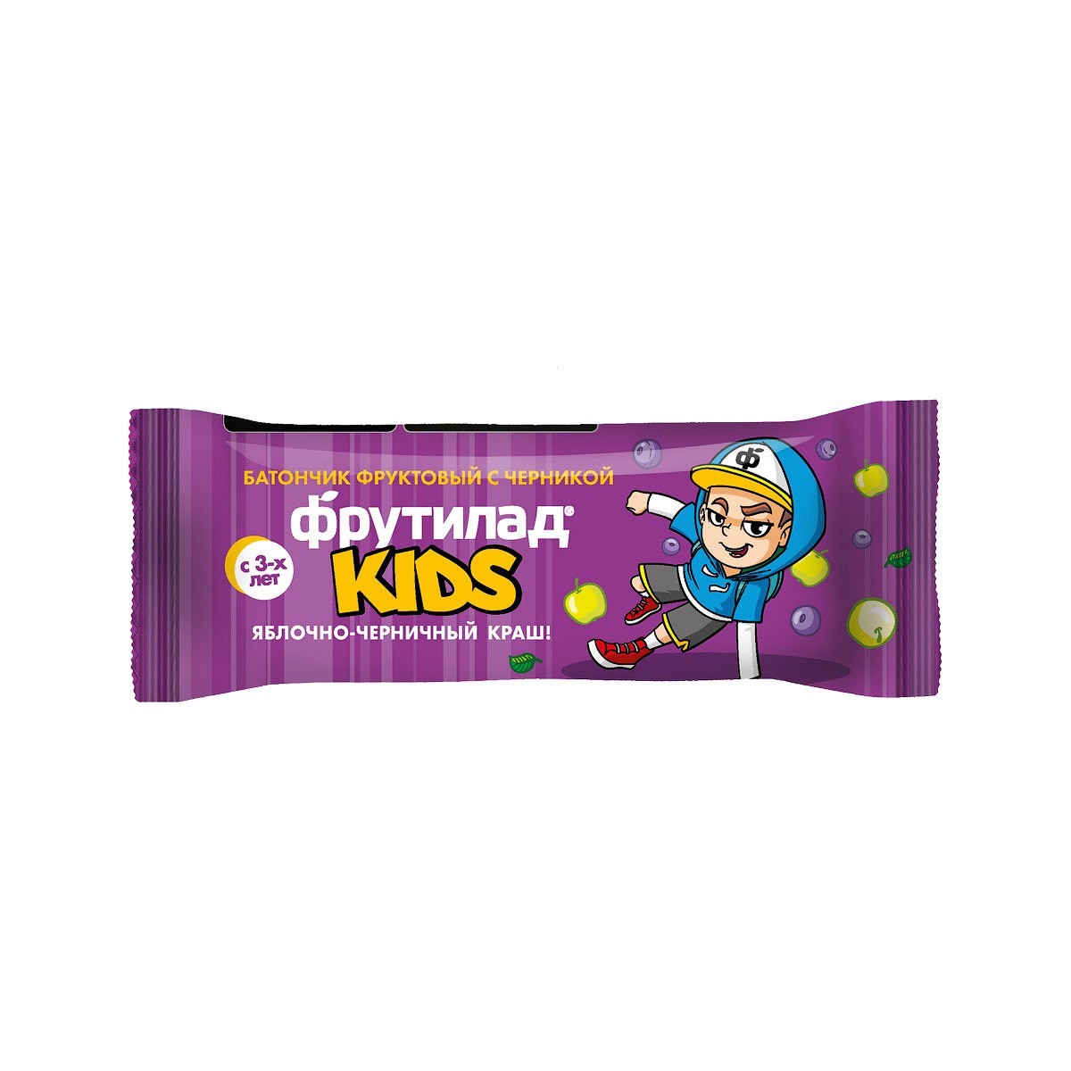 Батончик Фрутилад Яблочно-черничный краш из натурального яблочного пюре, с ягодами черники, сушеными абрикосами и яблоками